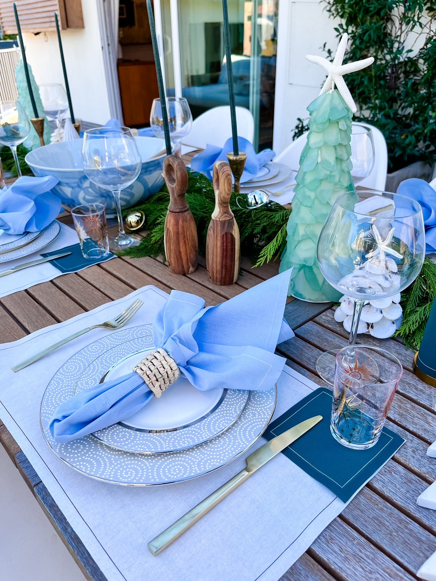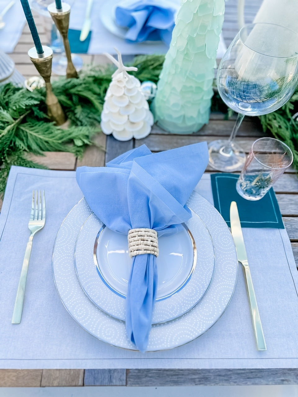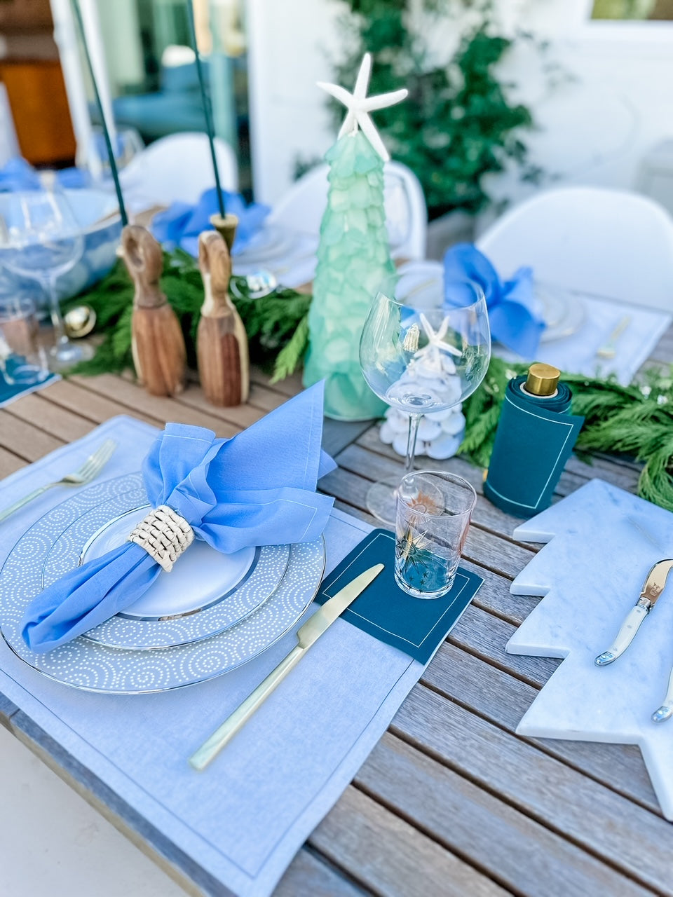 Bring the serene beauty of the coast to your holiday gatherings with our Coastal Christmas Tablescape. This effortlessly elegant setting blends crisp whites, soft ocean blues, and rich evergreen hues to create a refreshing twist on traditional holiday decor. Designed to evoke the tranquility of the seaside while capturing the spirit of the season, this tablescape is the perfect balance of natural beauty and festive sophistication.