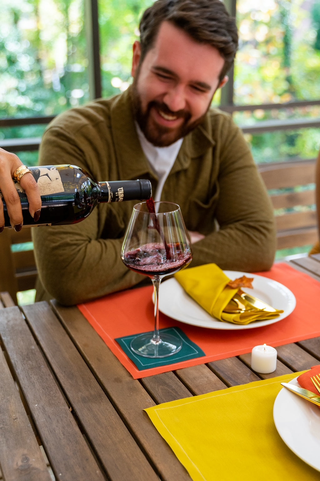 Gather around a welcoming table with our Fall with Friends Tablescape, designed to capture the rich hues and inviting essence of autumn. Featuring Late Sunset (deep orange) placemats and dinner napkins for a warm, harvest-inspired base, paired with Golden Child (soft gold) dinner napkins and placemats for a touch of elegance, and completed with Prince of Thieves (deep green) cocktail napkins to bring in the richness of the season, this tablescape blends cozy comfort with elevated style.